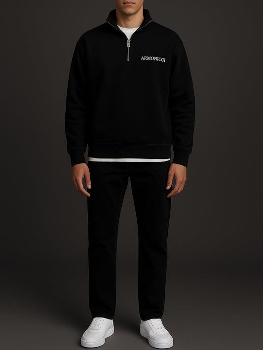 Heavyweight Jet Black Quarter Zip Sweatshirt