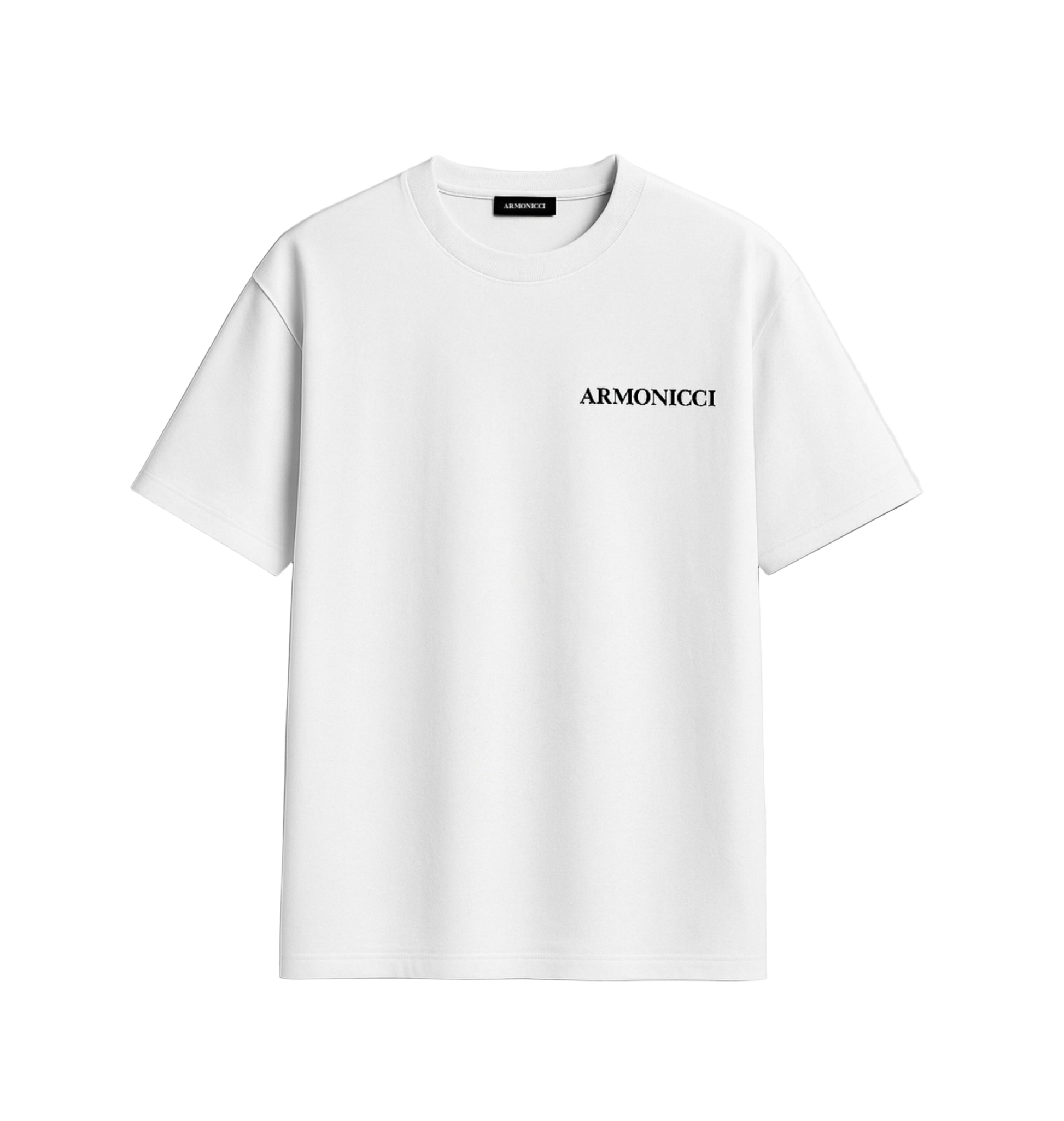 The Short Sleeve Oversized White T-Shirt featuring the ARMONICCI original branding, provides an oversized fit for that essential luxury minimal streetwear look. Formed using 230GSM 100% certified organic premium cotton for that ultra premium streetwear fit.